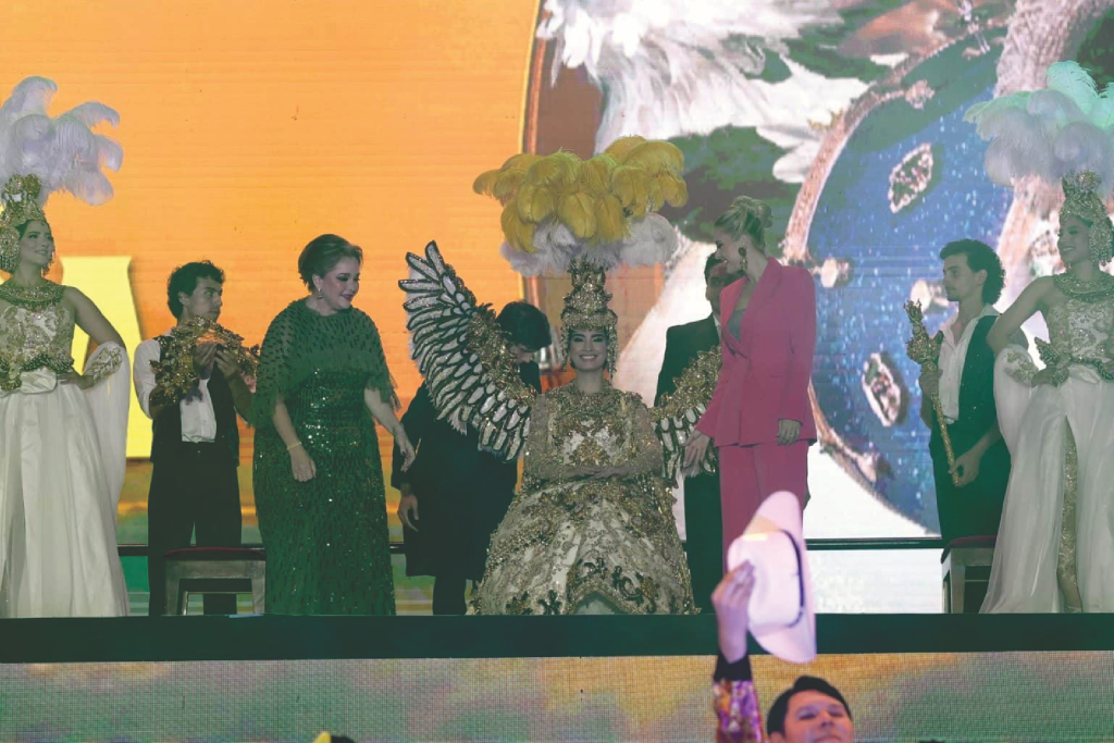Mazatlán, Sin., a 15 de febrero de 2026.- Eneyda Rocha Ruiz, presidenta del Sistema DIF Sinaloa, en representación del gobernador Rubén Rocha Moya y Estrella Palacios Domínguez, presidenta de Mazatlán, coronaron a la soberana ante más de 20 mil personas reunidas en el Estadio Teodoro Mariscal.
