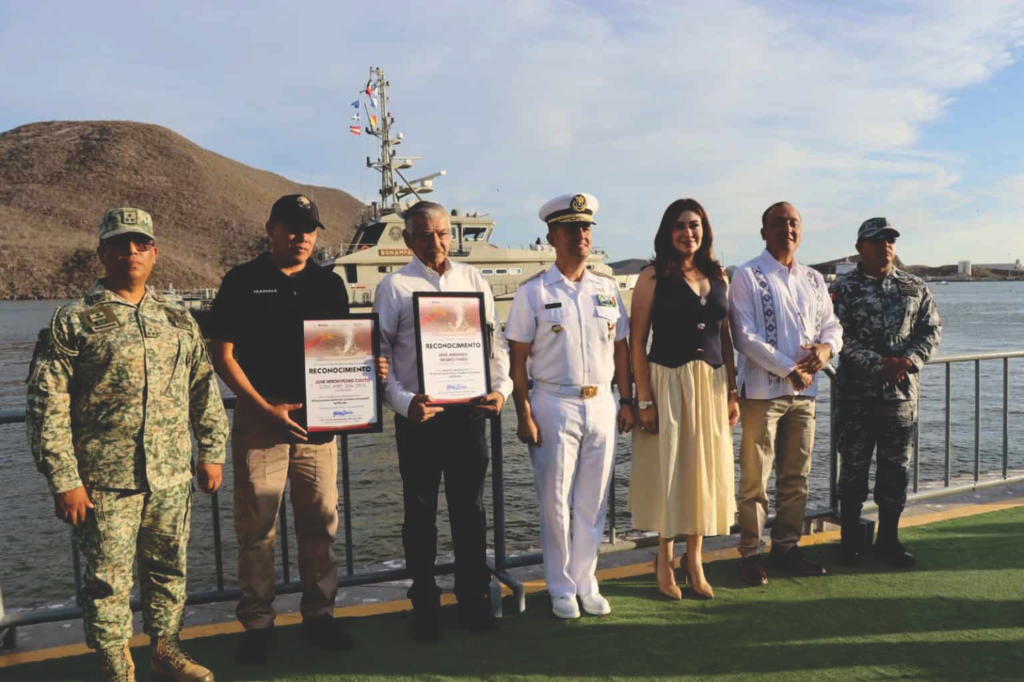 Topolobampo, Ahome, Sinaloa a 15 de abril de 2026.- El Puerto de Topolobampo fue sede de la conmemoración del 112 Aniversario del Primer Combate Aeronaval del Mundo, acto que reunió a autoridades civiles, militares y navales, así como a ciudadanos y visitantes, para recordar uno de los episodios más relevantes de la historia nacional e internacional ocurrido en estas aguas en 1914.