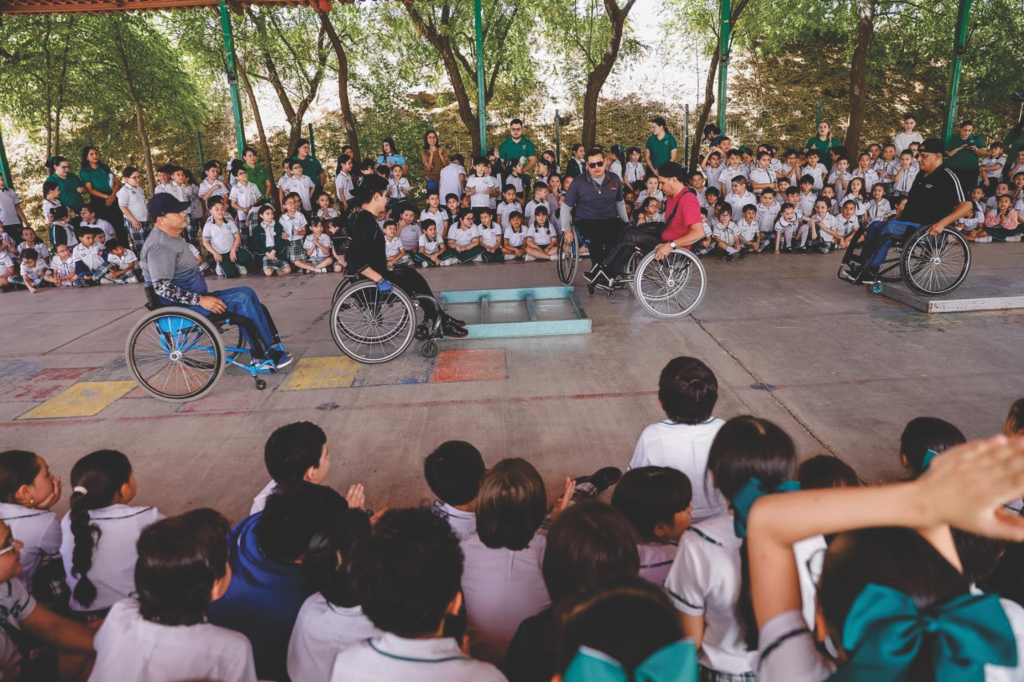 Culiacán, Sinaloa, a 15 de abril del 2026.- Este día el Sistema DIF Sinaloa a través de su programa DIF Sinaloa Incluyente que impulsa la Dra. Eneyda Rocha Ruiz, llevó a cabo una exhibición sobre el uso y manejo de silla de ruedas activa, dirigida a niñas y niños de la primaria STASE con el objetivo de generar conciencia sobre la discapacidad, la inclusión y el respeto hacia todas y todos.