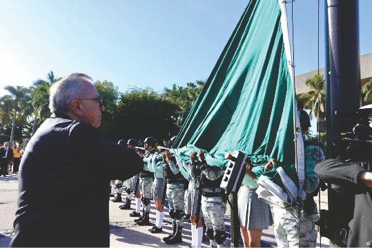 La ceremonia tuvo lugar en la explanada de Palacio de Gobierno, donde el gobernador Rocha primeramente izó la bandera nacional a toda asta y enseguida montó guardia de honor ante el monumento al general Lázaro Cárdenas, en compañía de los representantes de los demás Poderes del Estado, del Ayuntamiento de Culiacán y representantes militares.