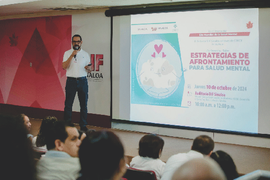 Al inicio del evento, el Dr. Miguel Antonio Borquez, director del Centro de Educación Incluyente y Salud Emocional, dio la bienvenida al personal del sistema DIF Sinaloa y se refirió a la importancia de “vivir en bienestar atendiendo y cuidando la salud mental”, mencionó además que la Organización Panamericana de la Salud tiene como lema este año: «Es tiempo de priorizar la salud mental en el lugar de trabajo».